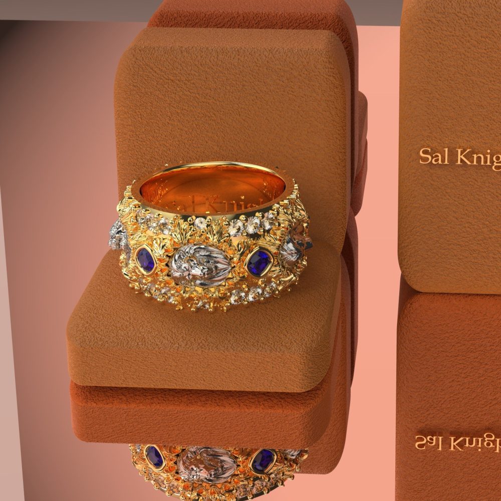 SKU: SK_21414 Categories: band men, Entire Collection Tags: black diamonds, gift for him, gold,, jewelry, lion, lionking,, men band, men love this, motif,, NYC, ring, sal knight, sapphire,, silver, the lion king, unique jewelry