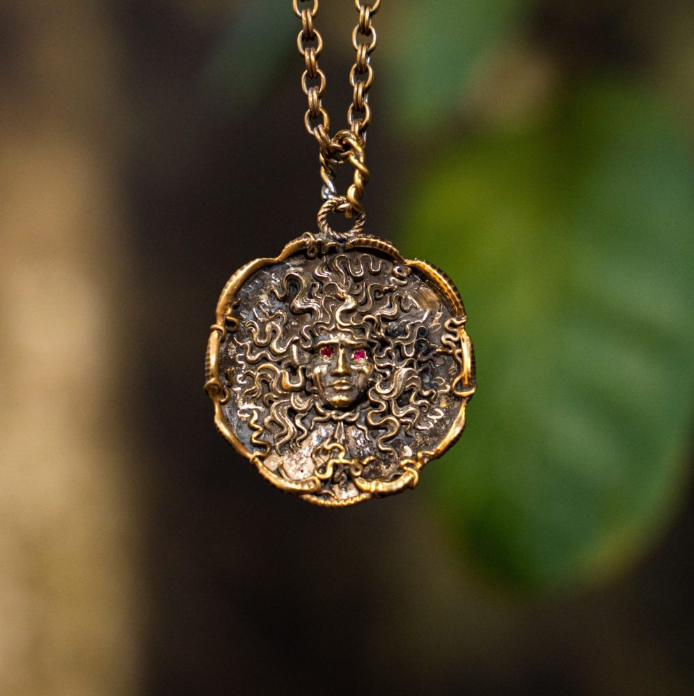 Medusa is a figure from Greek Mythology, the only mortal of the three Gorgons, along with her immortal sisters, Stheno and Euryale. The three Gorgons were born to the sea god of the dangers of the hidden deep, Phorcys, and the goddess of sea monsters and the dangers of the sea, Ceto.