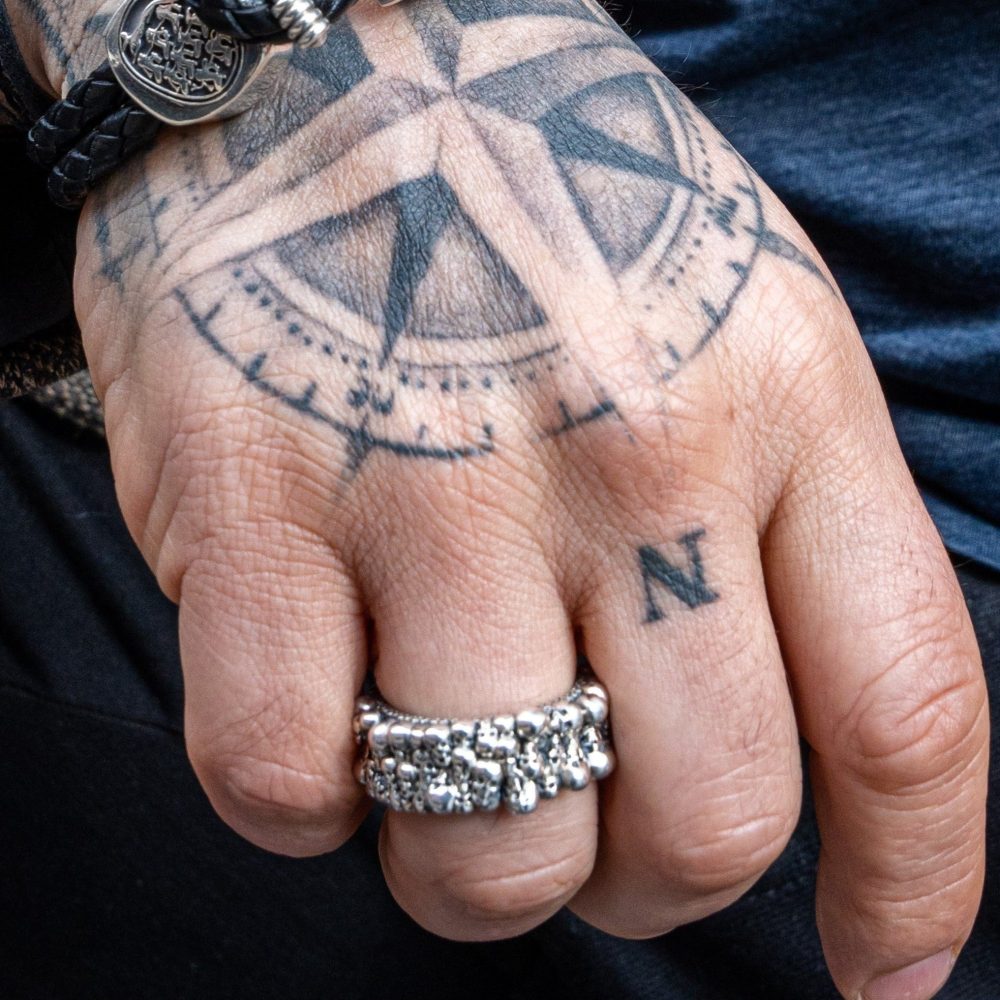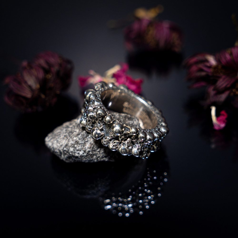 Skulls eternity 925 sterling silver all around skulls band, natural antique patina