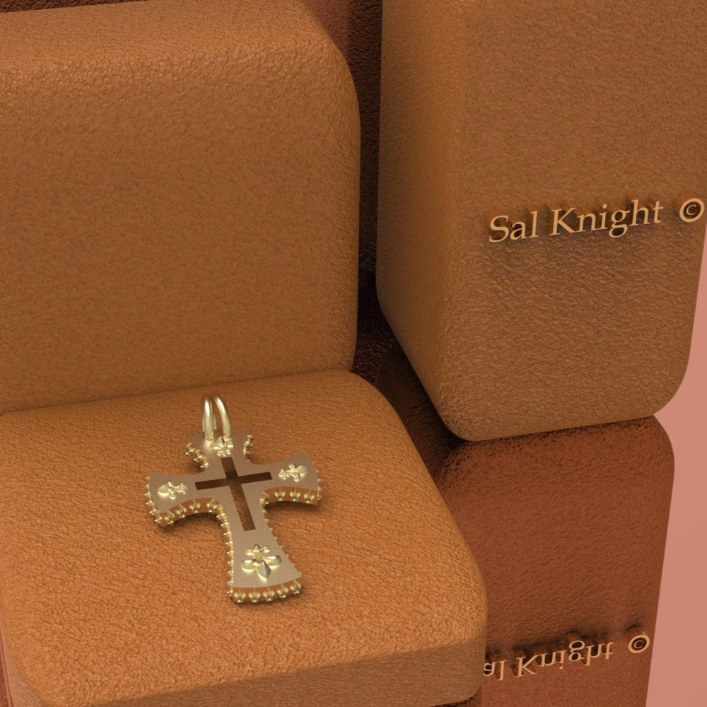 The Templar Cross is a beautifully crafted piece of jewelry made from 18 karat gold and featuring a light matt finish. This unique cross design includes the iconic fleur de lis symbol, a symbol often associated with the Knights Templar. Measuring 1.75 inches or 44mm in length, this pendant is sure to make a statement when worn.